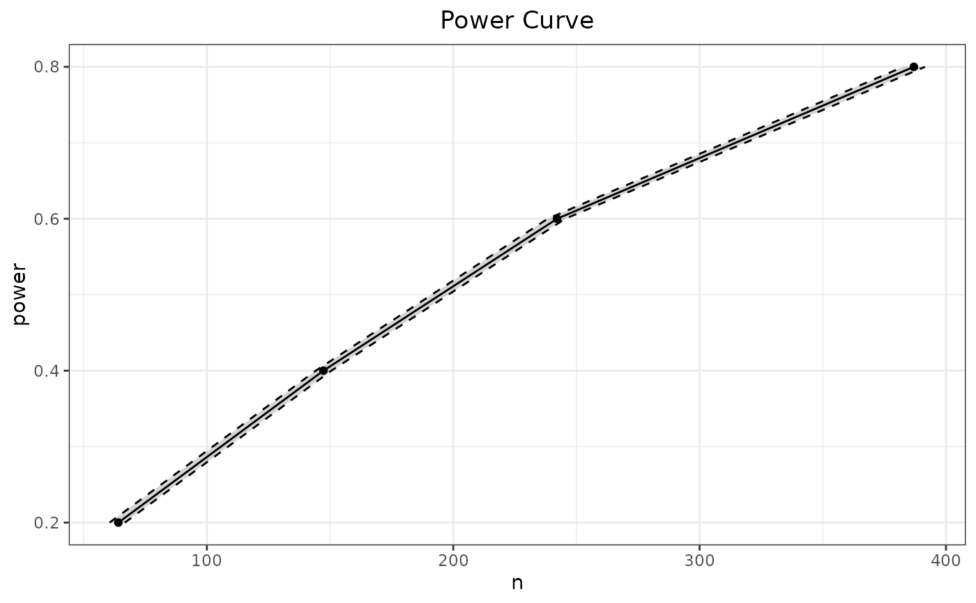SpowerCurveandSpowerBatch, first expression input must be identical to...inSpower, while the remaining named inputs must match the arguments to this expression to indicate which variables should be modified in the resulting power curves. ProvidingNAvalues is also supported to solve the missing component. Note that only the first three named arguments inSpowerCurvewill be plotted using the x-y, colour, and facet wrap aesthetics, respectively. However, if necessary the data can be extracted for further visualizations viaggplot_buildto provide more customized control- power